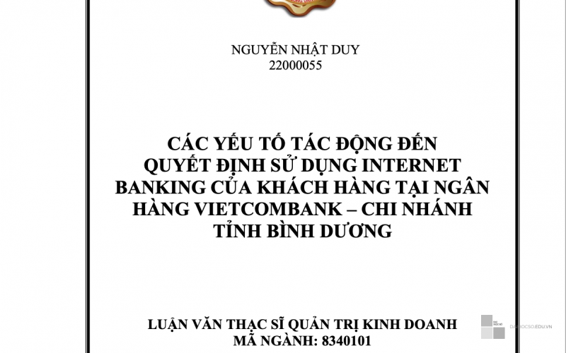 Bài báo cáo Luận văn Thạc Sĩ của anh Nguyễn Nhật Duy với đề tài "Các yếu tố tác động đến quyết định sử dụng Internet Banking của khách hàng tại Ngân hàng Vietcombank - Chi nhánh tỉnh Bình Dương" tập trung nghiên cứu một vấn đề quan trọng trong lĩnh vực dịch vụ tài chính – ngân hàng.