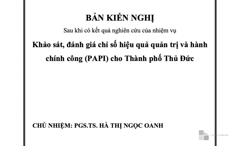 Nhiệm vụ Khảo sát, đánh giá chỉ số hiệu quả quản trị và hành chính công (PAPI) cho Thành phố Thủ Đức được thực hiện từ tháng 11/2022 và kết thúc tháng 3/2024, đã hoàn thành những mục tiêu cụ thể như sau:
